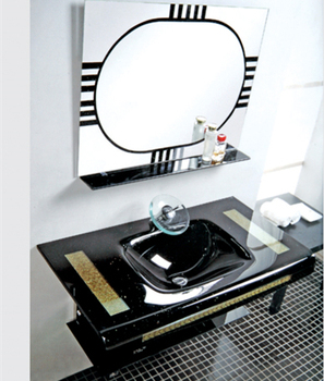 Hangzhou מודרני סגנון קטן אמבטיה זכוכית כיור יהירות עם מראה