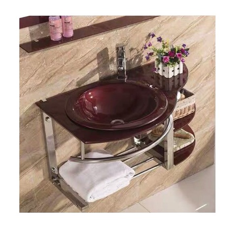 갈색 현대 스타일 욕실 벽 마운트 유리 분지