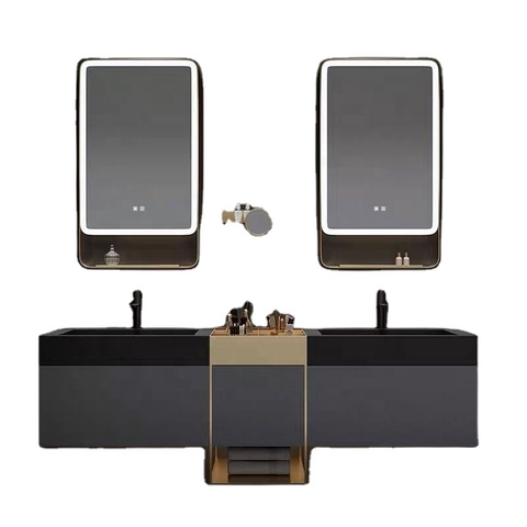2022หางโจวหรูหรารอยัลการออกแบบอ่างล้างหน้าคู่ Galaxy สแตนเลสสีทองห้องน้ำตู้โต๊ะเครื่องแป้ง