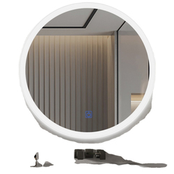 Led Gương phòng tắm chống sương mù, thời gian, chức năng nhiệt độ Acrylic đóng khung Led Gương thiết kế tròn